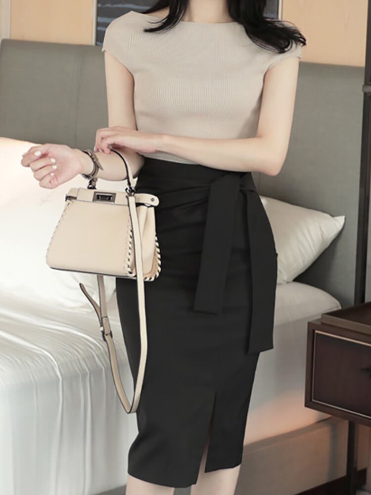 大人っぽく、ウエストのリボンのデザインがアクセントに。