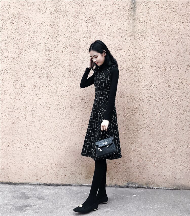 チェック柄風の落ち着いたワンピースにニットの2点セットです。