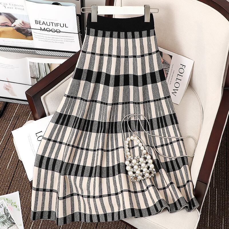 チェック柄ミドル丈ニットスカート